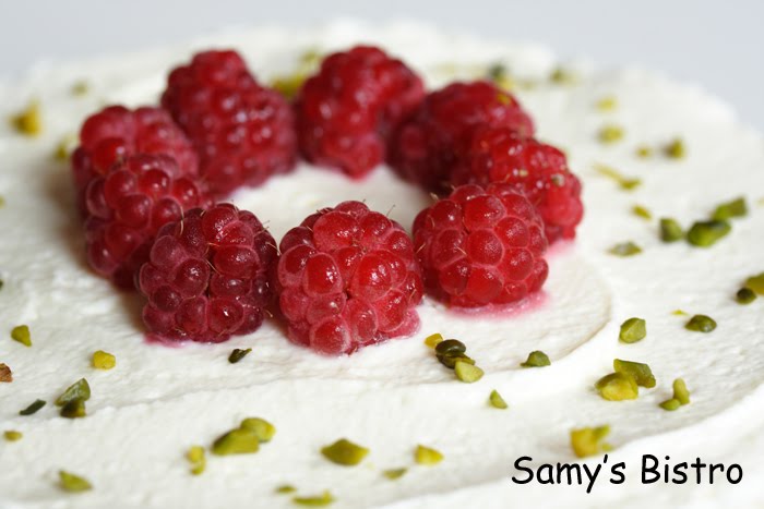 az egész tetejére:15 dkg friss málna,aprított pisztácia